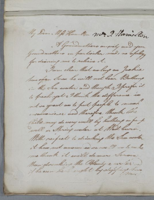 | Summary | Letter to Miss Hamilton concerning the case of 'Jackie'. It seems that Jackie is a brother of the addressee; letter begins 'A Grandmothers anxiety and your Grandmothers in particular needs no apology for desiring me to relieve it'. Miss Hamilton is Jackie's paternal aunt. Mr Dundas may be Jackie's father, John Hamilton-Dundas of Westburn & Duddingston or another relative. |
