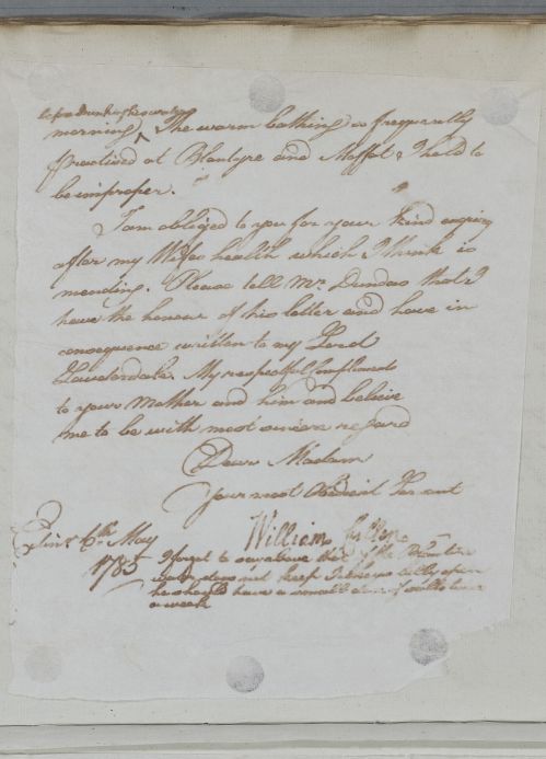 [ID:5043] From: Dr William Cullen (Professor Cullen) / To: Miss Margaret Hamilton / Regarding: Mr John Hamilton (Jackie; Hamilton-Dundas) (Patient) / 6 May 1785 / (Outgoing)