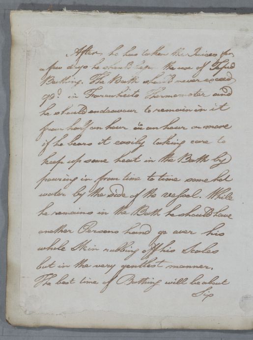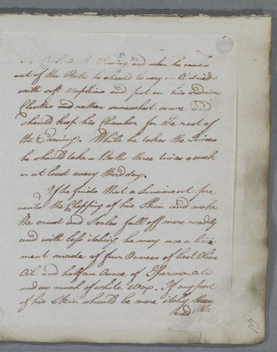 Case of Mr George Mill (Milne and Milnes) who is given a detailed regimen and advised to take an aperient for what might be a skin condition which Cullen thinks may be hereditary. |