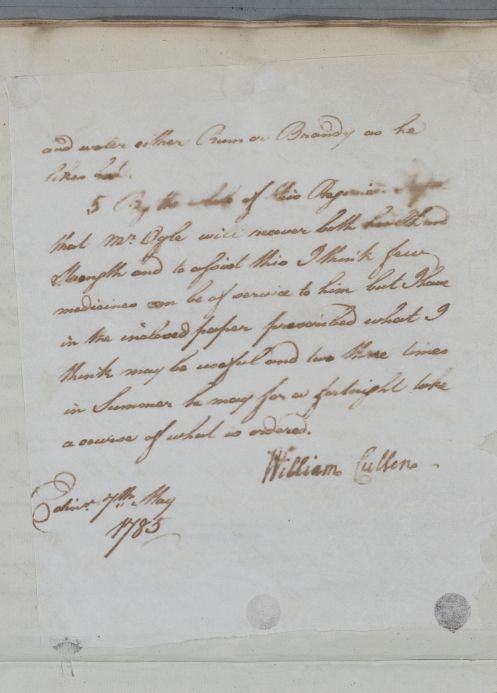 | Summary | Reply 'For Mr Ogle'. A full dietary and exercise regimen, recommending sea-bathing and horse-riding. Possibly given to the patient in person, as in document 5196 Cullen refers to the first time he had seen the patient. |
