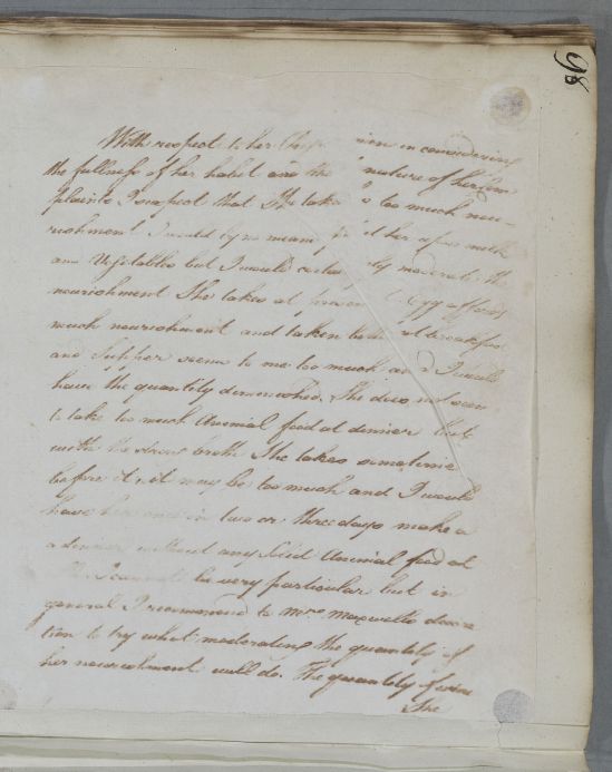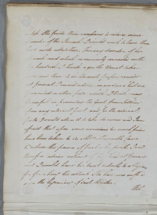 | Summary | Reply, 'For Mrs Maxwell'. Cullen is 'of opinion that a Gouty disposition is the foundation of the whole [her various ailments]' and prescribes a diaphoretic solution, the recipe for which is enclosed. This letter appears to be addressed, more generally, to an unknown physician. In letter 6292, however, Cullen addresses John Gilchrist and states he 'had not the smallest hint of your being concerned in the Case otherwise I should have addressed himself more particularly to you' in prior correspondence. |