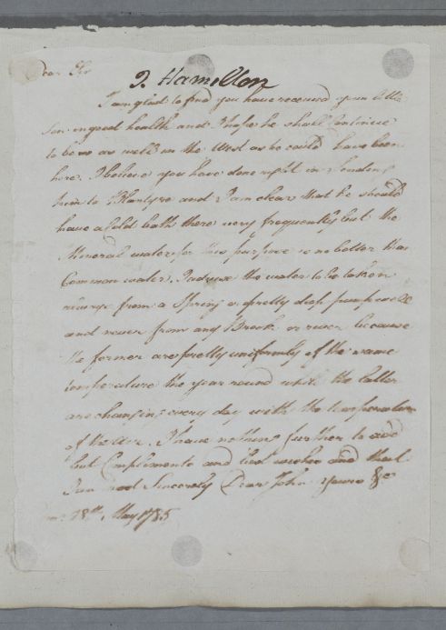 [ID:5061] From: Dr William Cullen (Professor Cullen) / To: Mr John Hamilton (Hamilton-Dundas; of Westburn and Duddingston) / Regarding: Mr John Hamilton (Jackie; Hamilton-Dundas) (Patient) / 28 May 1785 / (Outgoing)