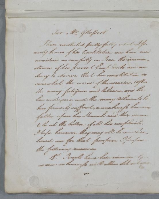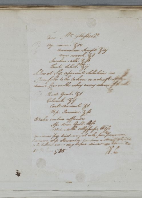 | Summary | Reply, 'For Mr Glassell'. Probably addressed to Alexander Copland. Cullen recommends a journey and gives dietary advice. Aperient and stomachic recipes are included. |