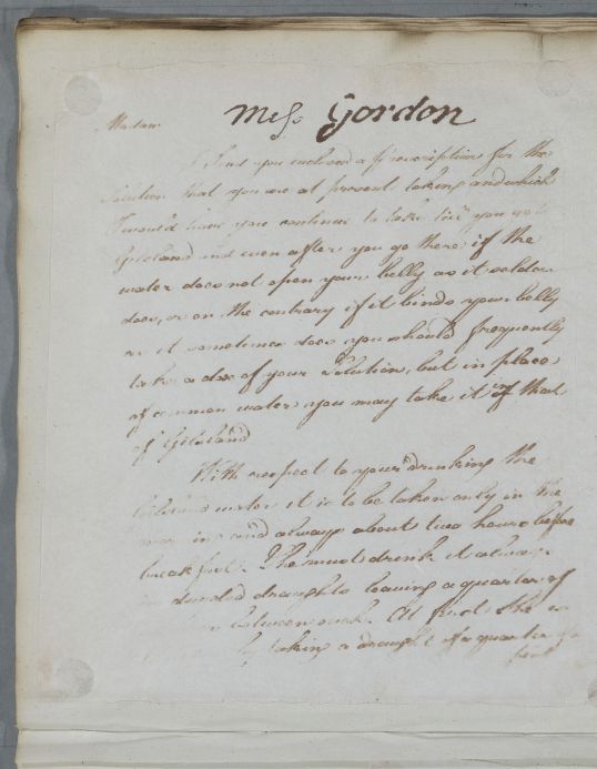 Case of Miss Gordon who is advised on taking the waters at Gilsland spa. |