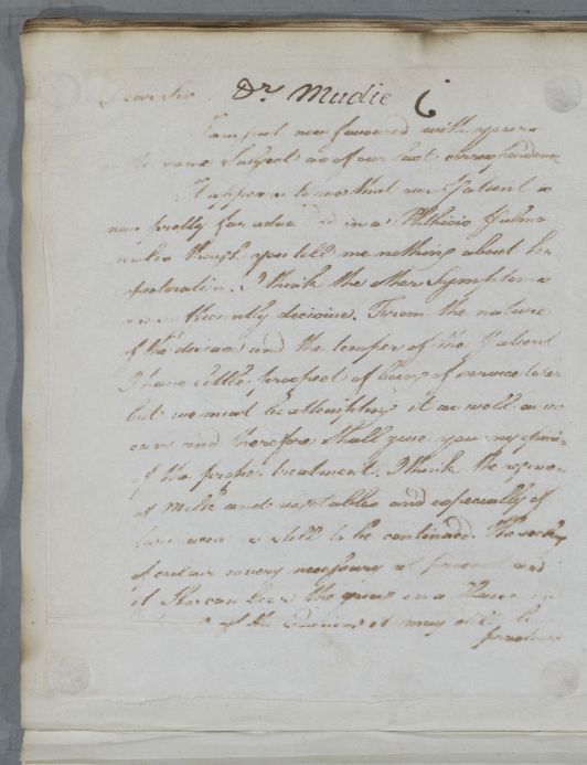 | [PERS ID:1646] | Addressee | Dr John Mudie (Moodie) |