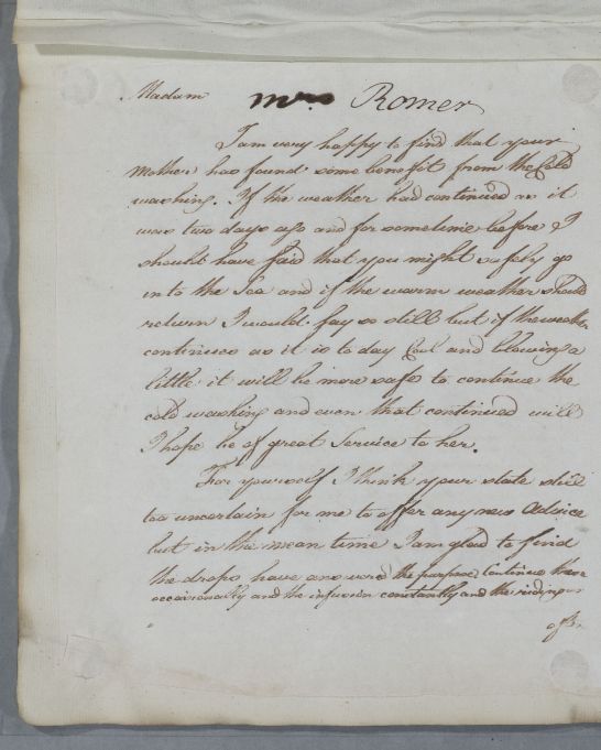 | Summary | Reply concerning the case of Mrs Marshall, written to her daughter Mrs [Francis?] Romer and also advising the daughter. |