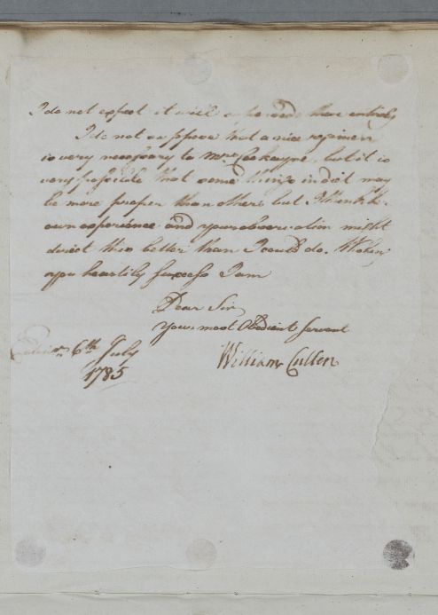 [ID:5097] From: Dr William Cullen (Professor Cullen) / To: Mr William Cokayne (Cocayne) / Regarding: Mrs Cokayne (Patient) / 6 July 1785 / (Outgoing)