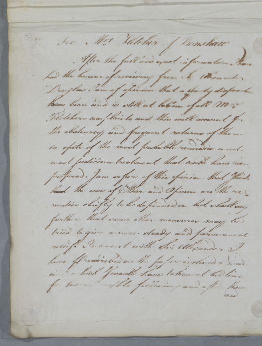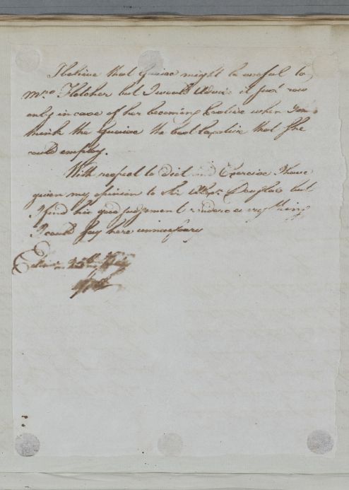 Case of Mrs Fletcher of Bonshaw whose ailments are attributed to a a 'gouty dispotion'. |