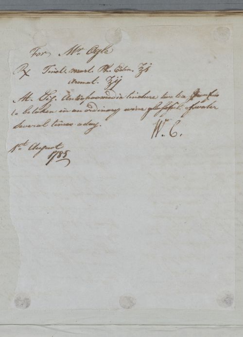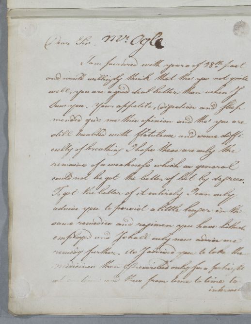 [ID:5109] From: Dr William Cullen (Professor Cullen) / To: Reverend Ralph Ogle / Regarding: Reverend Ralph Ogle (Patient) / 1 August 1785 / (Outgoing)