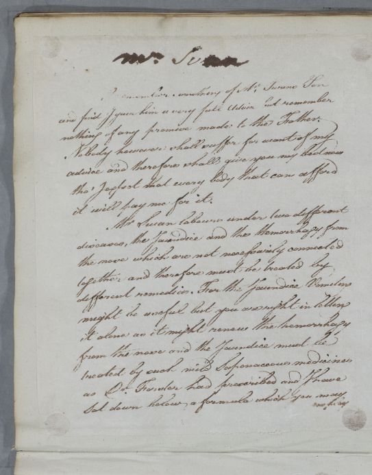 Case of Mr Swan who is advised on regimen and prescribed cooling, pectoral, and softening medicines. |