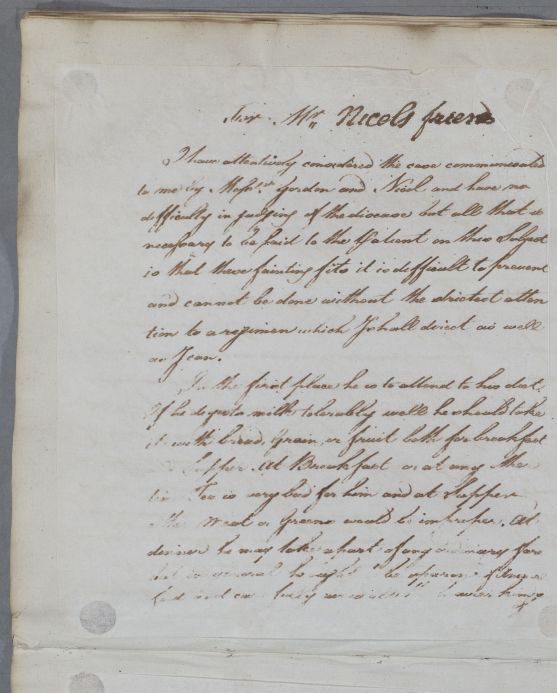 Case of Mr Nichol's friend, a young man who has been having 'fainting fitts' and who fears he may have epilepsy. |