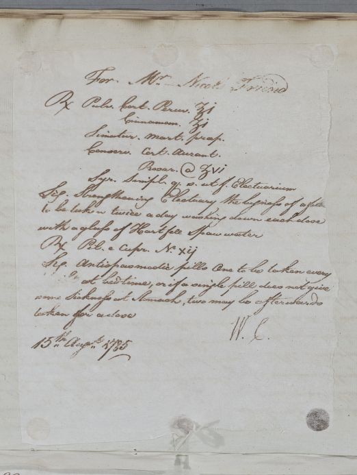 [ID:5126] From: Dr William Cullen (Professor Cullen) / To: Mr Nicol / Regarding: Mr Gordon? (Patient) / 15 August 1785 / (Outgoing)