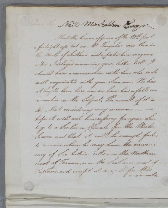 Reply, 'Neil Malcolm, Esqr.'