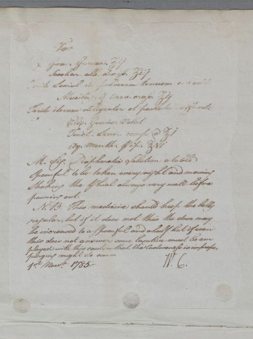 [ID:5165] From: Dr William Cullen (Professor Cullen) / To: Mr McIntyre / Regarding: Mr William McIntyre (Patient) / 1 November 1785 / (Outgoing)