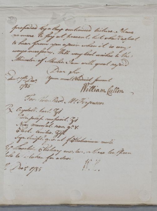 [ID:5179] From: Dr William Cullen (Professor Cullen) / To: Dr Alexander Stewart / Regarding: Reverend Adam Ferguson (Patient) / 7 December 1785 / (Outgoing)