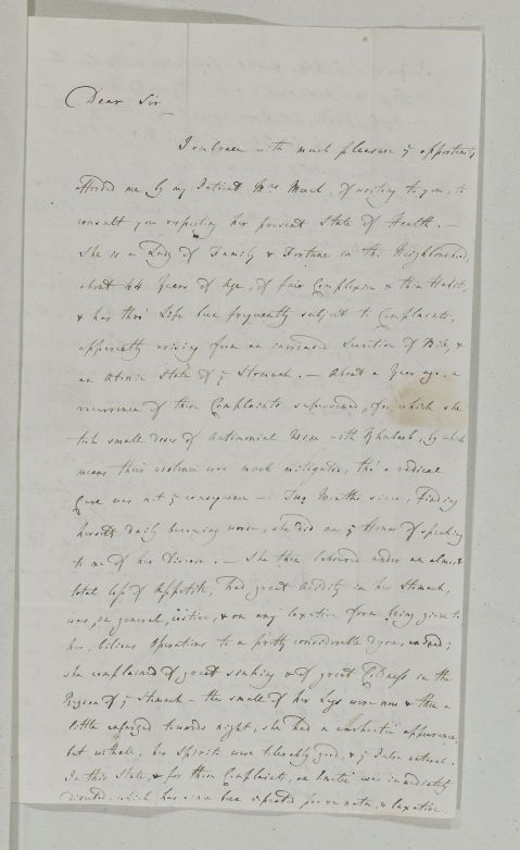Letter from Dr John Warren to Cullen concerning the case of Mrs Mack, loosely mounted in the casebook.