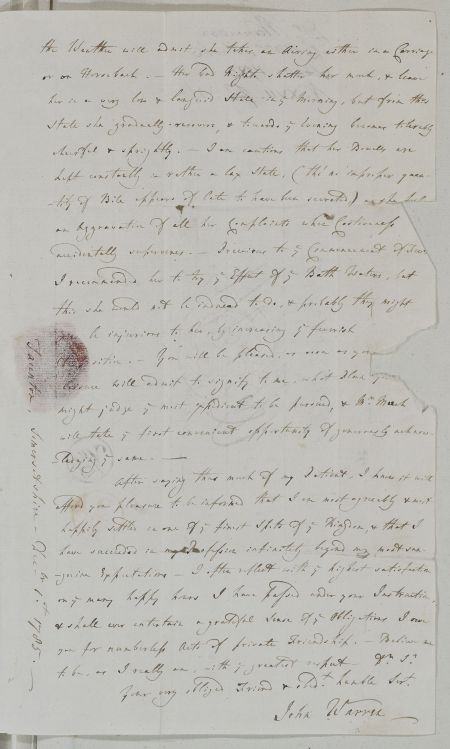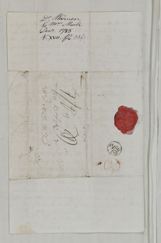 | Summary | Letter from Dr John Warren to Cullen concerning the case of Mrs Mack, loosely mounted in the casebook. |