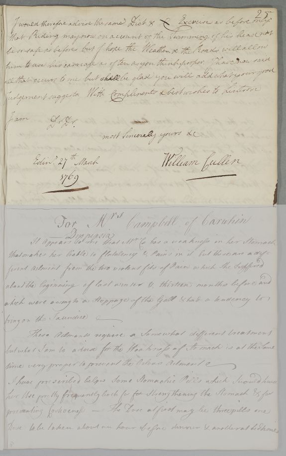 [ID:52] From: Dr William Cullen (Professor Cullen) / To: [ADDRESSEE UNKNOWN] / Regarding: Mr Murray (of Lintrose) (Patient) / 27 March 1769 / (Outgoing)