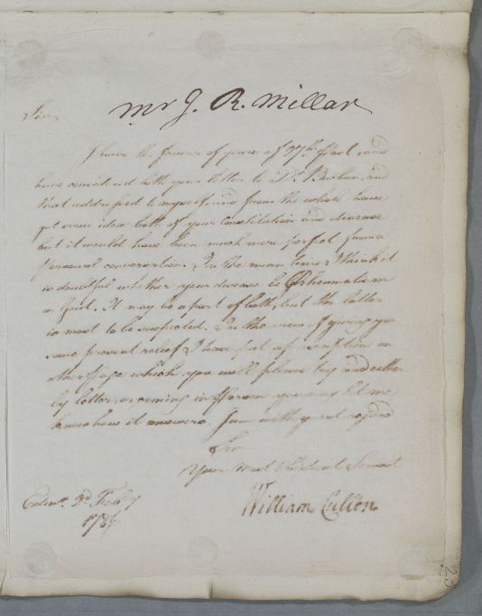 The Consultation Letters of Dr William Cullen (1710-1790) at the Royal College of Physicians of Edinburgh