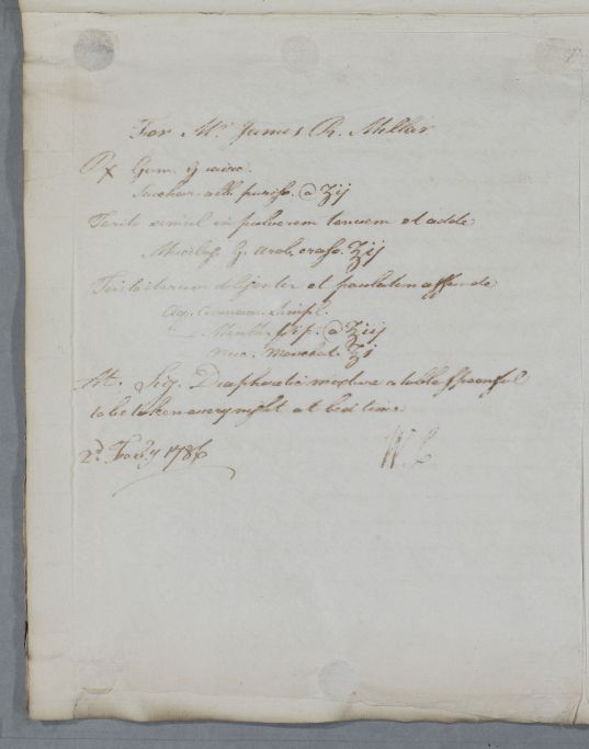 [ID:5203] From: Dr William Cullen (Professor Cullen) / To: [ADDRESSEE UNKNOWN] / Regarding: Mr James R. Miller (Millar) (Patient) / 2 February 1786 / (Outgoing)