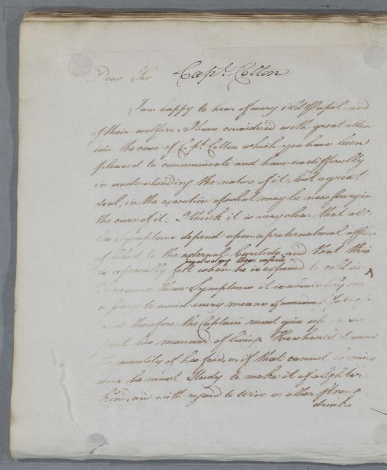[ID:5209] From: Dr William Cullen (Professor Cullen) / To: Dr Thomas Constable / Regarding: Captain Cotton (Patient) / 11 February 1786 / (Outgoing)