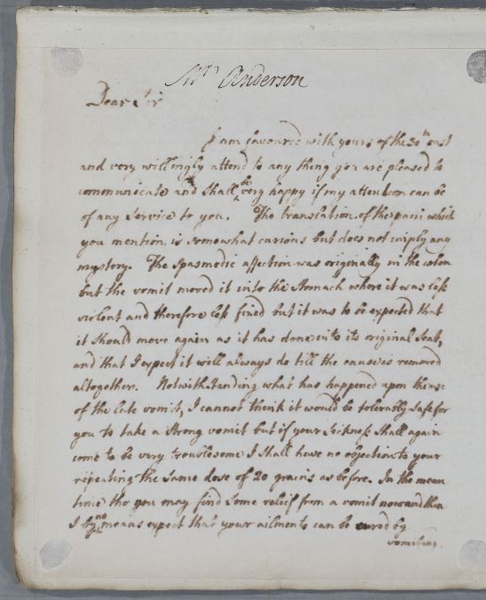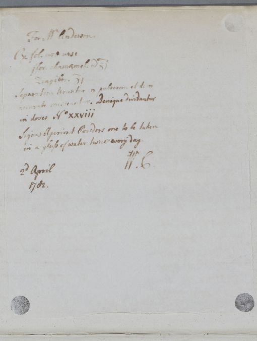 [ID:521] From: Dr William Cullen (Professor Cullen) / To: Mr Alexander Anderson (of Aberdeen) / Regarding: Mr Alexander Anderson (of Aberdeen) (Patient) / 3 April 1782 / (Outgoing)