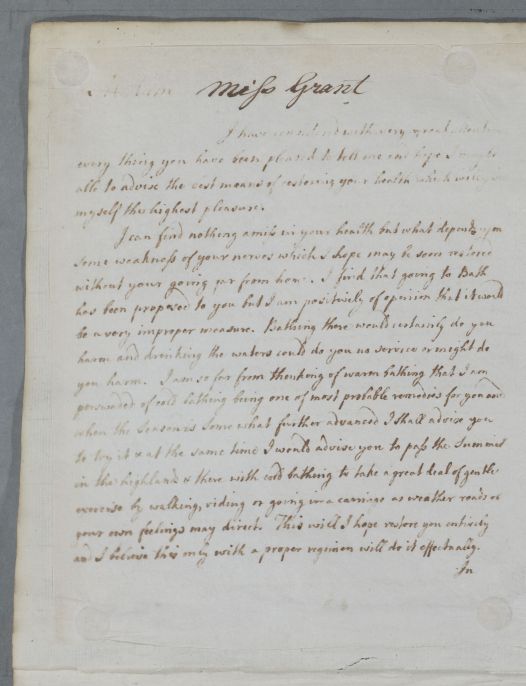 [ID:5210] From: Dr William Cullen (Professor Cullen) / To: [ADDRESSEE UNKNOWN] / Regarding: Miss Grant (Patient) / 11 February 1786 / (Outgoing)