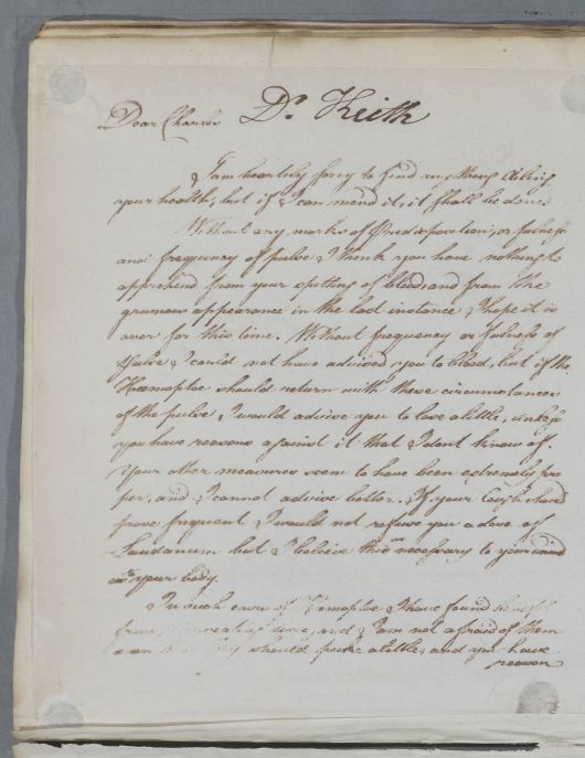 [ID:5222] From: Dr William Cullen (Professor Cullen) / To: [ADDRESSEE UNKNOWN] / Regarding: Dr Charles Keith (Patient) / 14 March 1786 / (Outgoing)