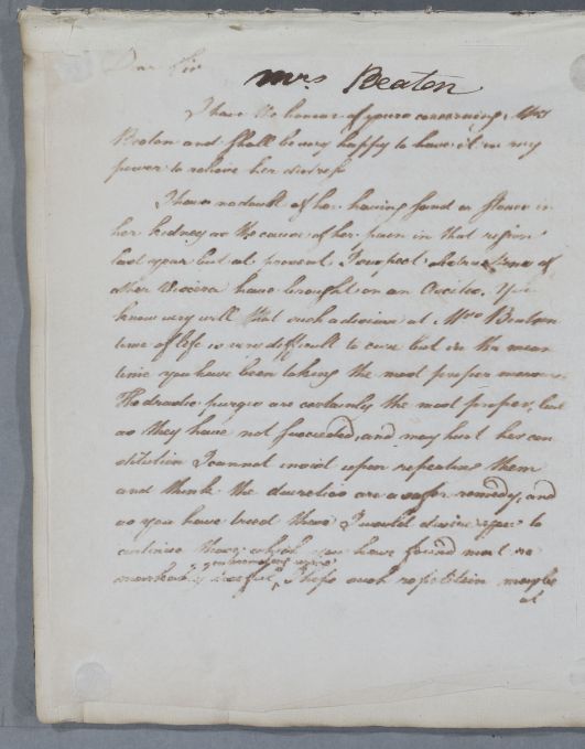 Case of Mrs Betty Beatson who has stomach disorder and, some years later, has a nephritic complaint. |