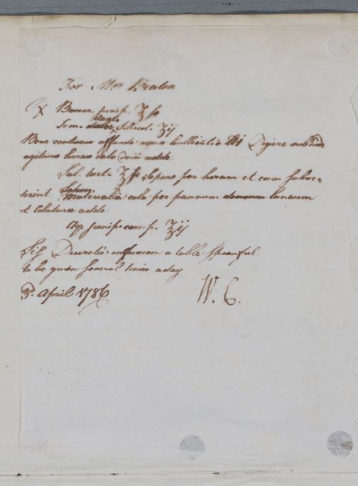 [ID:5233] From: Dr William Cullen (Professor Cullen) / To: Dr Alexander Wemyss (of Pitkenny) / Regarding: Mrs Elizabeth Beatson (Betty) (Patient) / 3 April 1786 / (Outgoing)