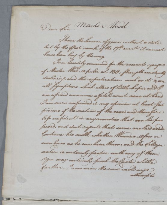 Case of Master Wood, aged seventeen and recently a pupil at Westminster School, who has a bladder complaint attributed to a venereal infection and also a pulmonary weakness which proves fatal. |