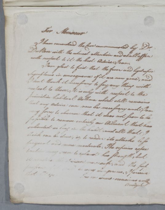 Case of Mr Dubose, a Frenchman, who has had a fever and also suffers from an 'habitual asthma'. |