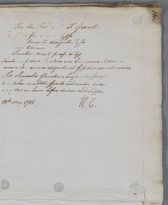[ID:5256] From: Dr William Cullen (Professor Cullen) / To: Reverend Francis Grant / Regarding: [A matter not directly regarding a patient] / 13 May 1786 / (Outgoing)
