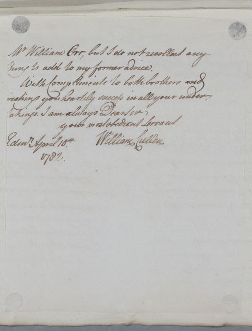 [ID:526] From: Dr William Cullen (Professor Cullen) / To: Dr Alexander Taylor (Sanders) / Regarding: Mr James Orr (Patient), Mr William Orr ((later) of Ingliston, then Ralston) (Patient) / 10 April 1782 / (Outgoing)
