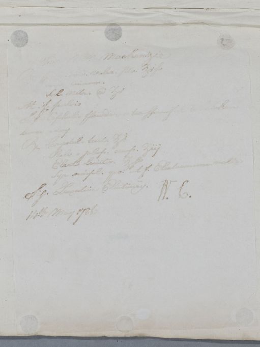 | Summary | Reply headed 'For Mr McKenzie.. Regimen for the young boy, with dietary advice and cephalic and laxative recipes enclosed. Cullen writes: 'We think he should not be set down to study, or any thing perplexing till his health is further confirmed'. |