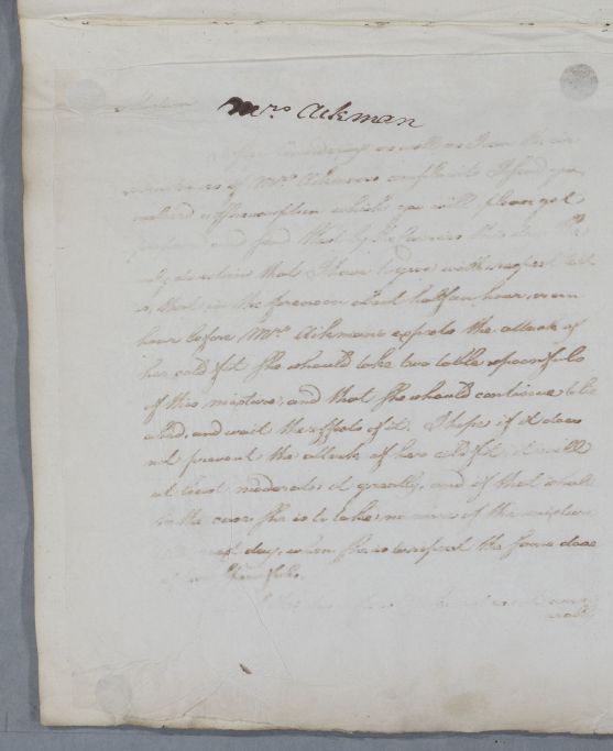 | Summary | Response concerning the case of Mrs Aikman (possibly written to her). |