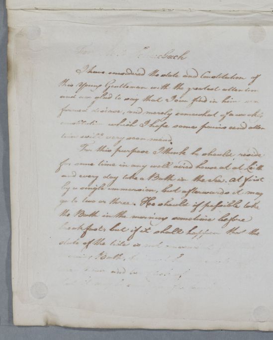 Case of John Schuback [Shubach], who is advised to take up sea bathing for his weak constitution. Faced with bad weather, he takes cold baths indoors instead. |