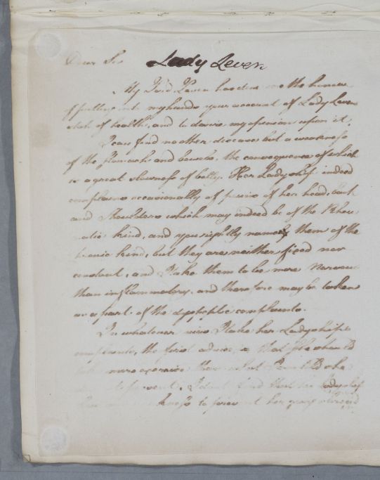 Case of Lady Leven who has a digestive and bowel disorder. |
