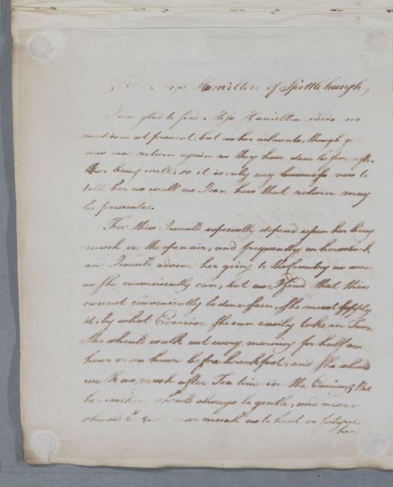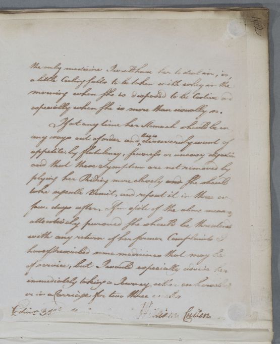 Case of Miss Hamilton of Spittlehaugh, who is advised to take up riding to prevent to prevent the return of an unnamed former complaint. |