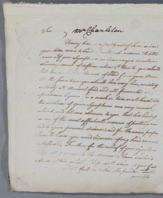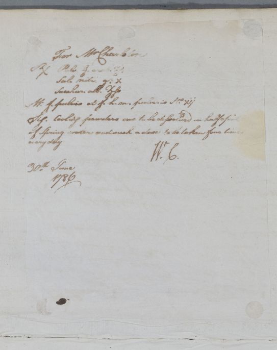 [ID:5291] From: Dr William Cullen (Professor Cullen) / To: Mr Richard Charleton / Regarding: Mr Richard Charleton (Patient) / 30 June 1786 / (Outgoing)