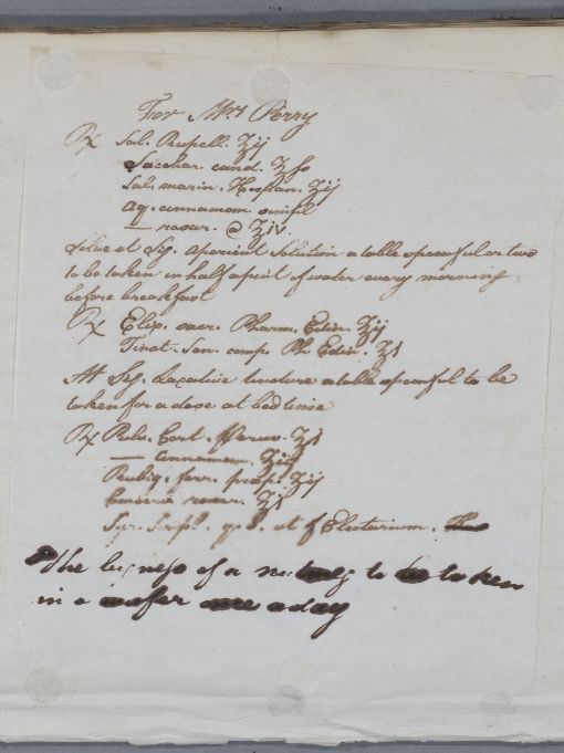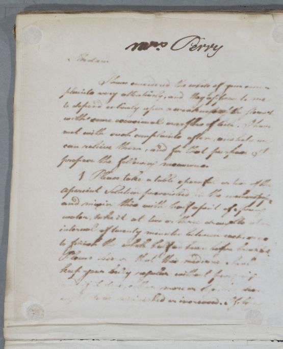 [ID:5299] From: Dr William Cullen (Professor Cullen) / To: Mrs Perry / Regarding: Mrs Perry (Patient) / 8 July 1786 / (Outgoing)