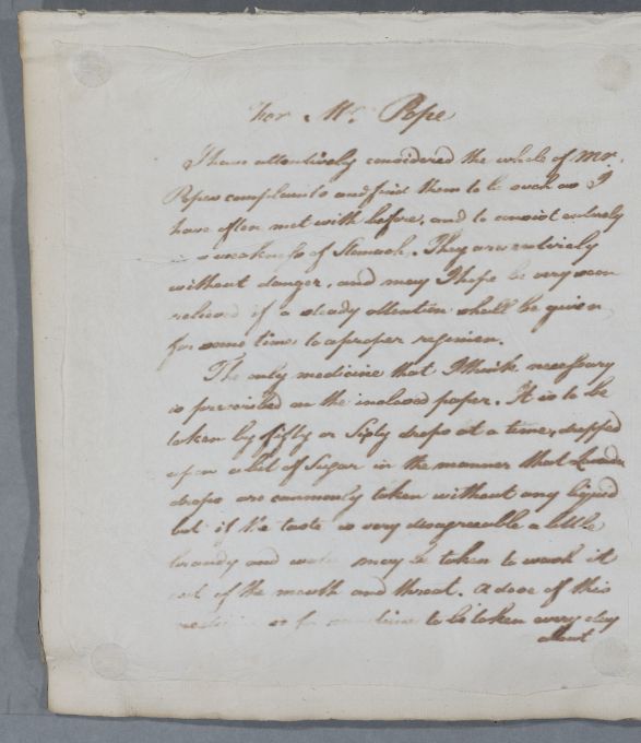 [ID:5308] From: Dr William Cullen (Professor Cullen) / To: [ADDRESSEE UNKNOWN] / Regarding: Mr Pope (Patient) / 16 July 1786 / (Outgoing)