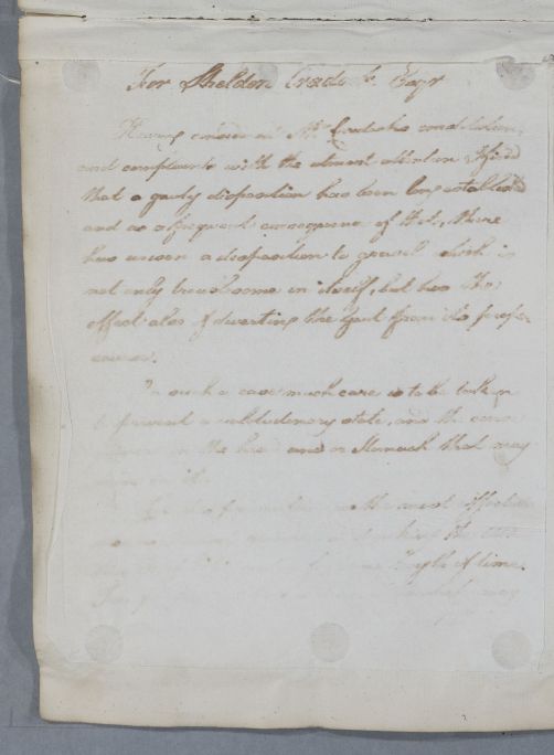 [ID:5323] From: Dr William Cullen (Professor Cullen) / To: Dr / Regarding: Sheldon Cradock (Patient) / 31 August 1786 / (Outgoing)