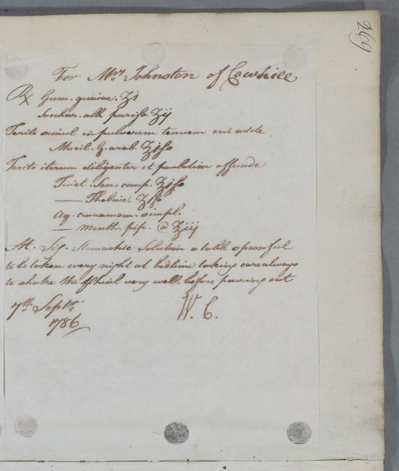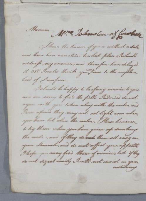| Summary | Recipe and reply headed 'For Mrs Johnston of Cowhill', Cullen sent letter to Dumfries as he did not know where Cowhill was. |