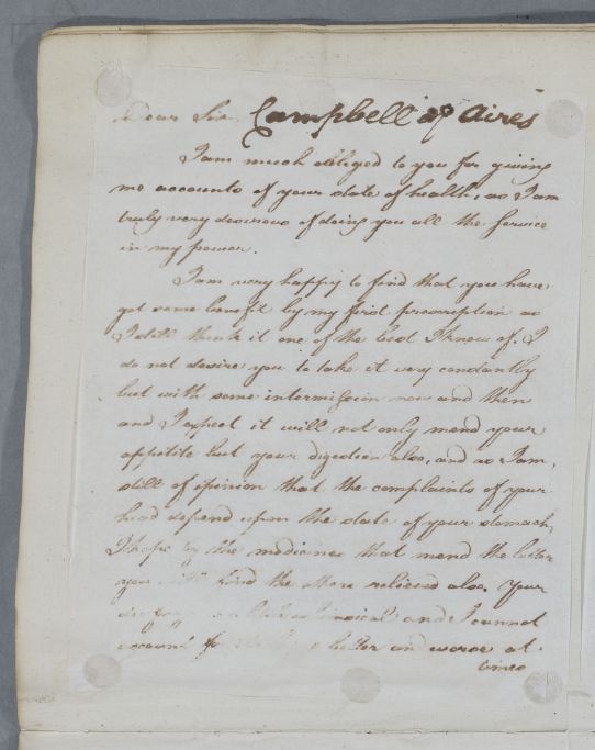 [ID:5333] From: Dr William Cullen (Professor Cullen) / To: Mr George Campbell (of Aires; Aress) / Regarding: Mr George Campbell (of Aires; Aress) (Patient) / 16 September 1786 / (Outgoing)