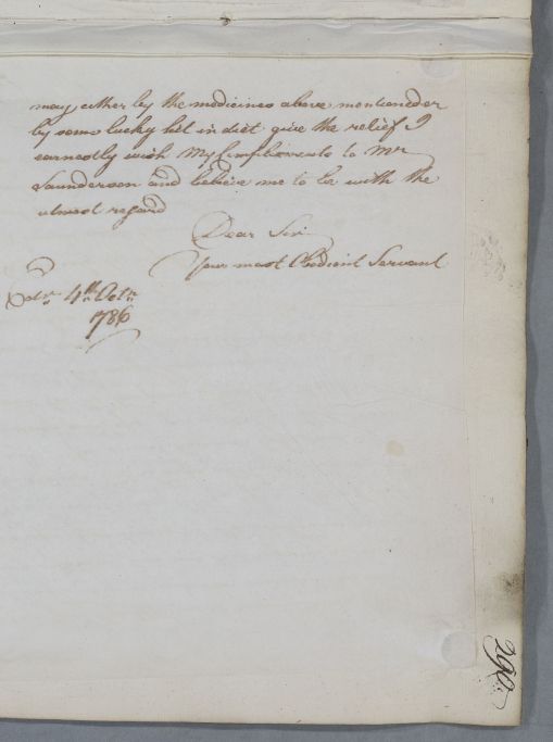[ID:5344] From: Dr William Cullen (Professor Cullen) / To: Mr Laurence Edmonston (Edmonstone) / Regarding: Miss Johannah Sanderson (Patient) / 4 October 1786 / (Outgoing)