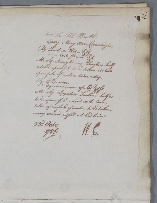 [ID:5352] From: Dr William Cullen (Professor Cullen) / To: [ADDRESSEE UNKNOWN] / Regarding: Lady Mary Anne Carnegie (Mary Ann Carnaigie) (Patient) / 22 October 1786 / (Outgoing)