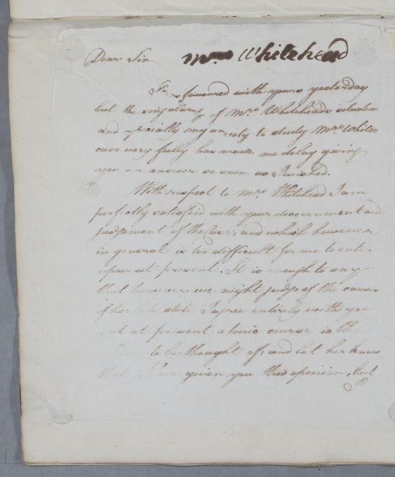 | Summary | Letter concerning the case of Mrs Whitehead, [and Mrs White?]. |