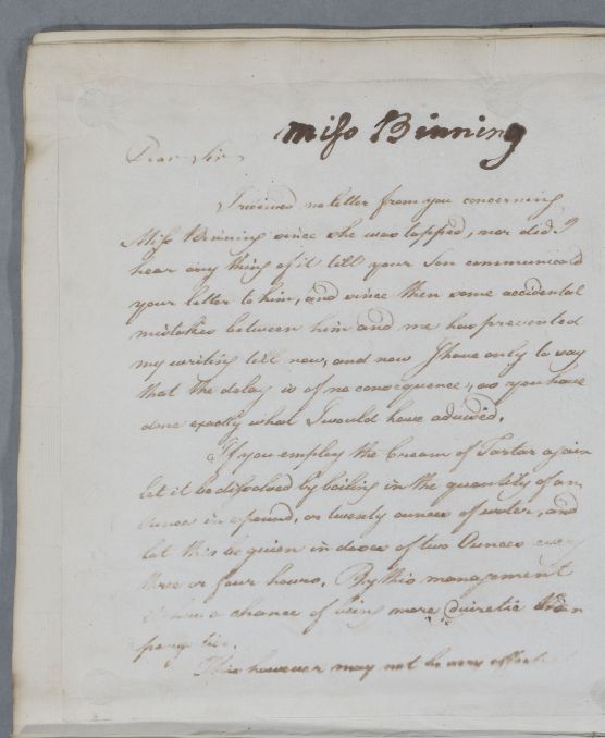 [ID:5366] From: Dr William Cullen (Professor Cullen) / To: Thomas Logan / Regarding: Miss Betty Binning (of Haws) (Patient) / 2 December 1786 / (Outgoing)