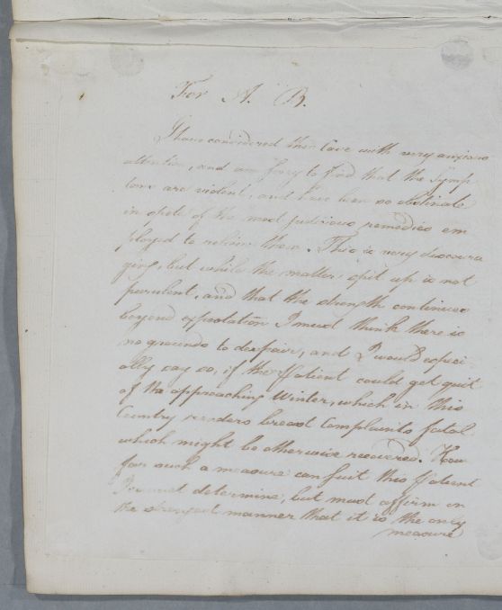 | Summary | Reply headed 'For A. B.'. Gender of patient not known. |